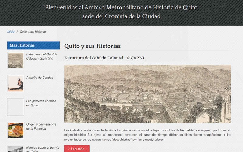 Descripción: Diseño y desarrollo del portal web institucional del Archivo Metropolitano de Historia de Quito.