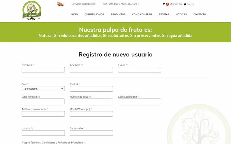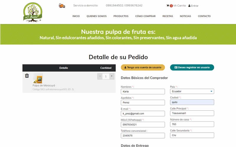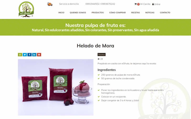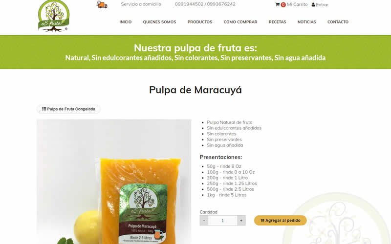 Descripción: Diseño, desarrollo de un Catálogo Web de Productos de Pulpa de Fruta Natural, Procesador y Proveedor de Pulpa de Frutas Naturales, Carrito de Compras. Ecommerce.