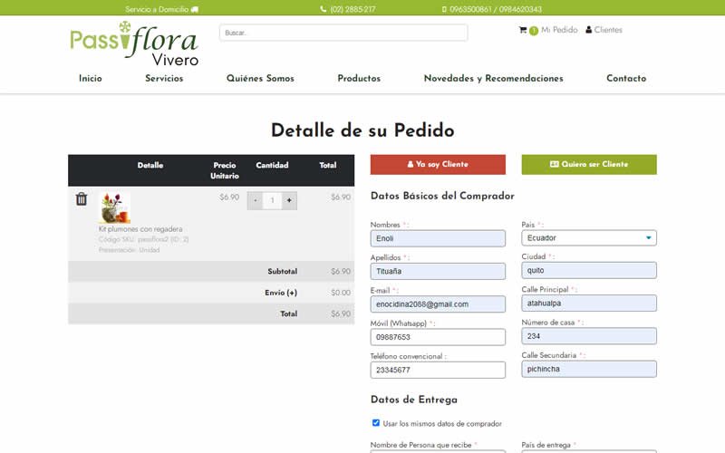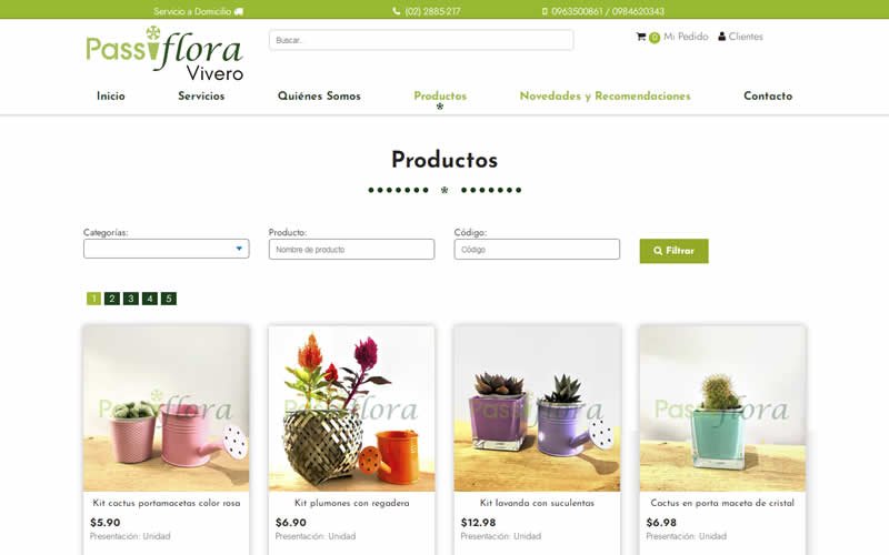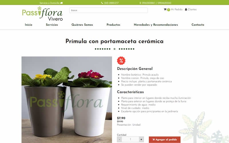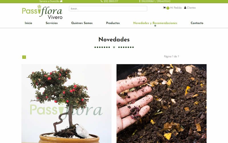 Descripción: Diseño y desarrollo de un Catálogo Web para Passiflora Vivero, Vivero especializado en la producción de plantas ornamentales para jardínes y áreas verdes. Ofrece variedad de tipo de plantas y servicios. Carrito de Compras. Ecommerce.