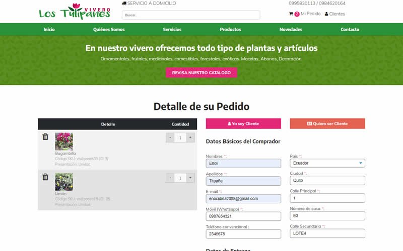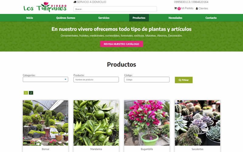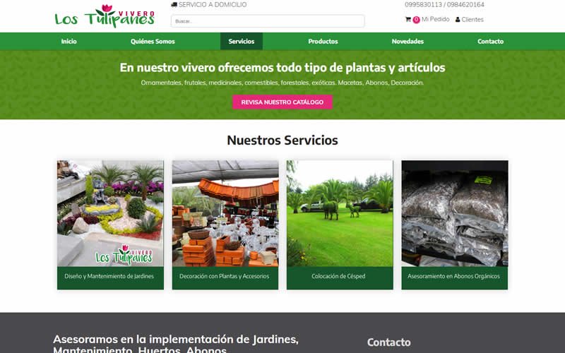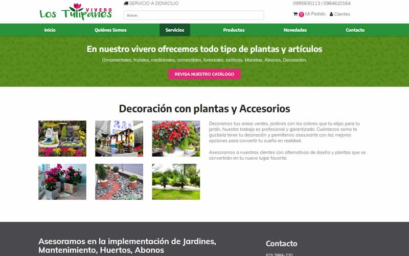 Descripción: Diseño y desarrollo de un Catálogo Web para Vivero Los Tulipanes, Vivero especializado en la venta de plantas ornamentales, medicinales, plantas para huerto y accesorios para decoración de jardines, venta de macetas, abonos. Carrito de Compras. Ecommerce.