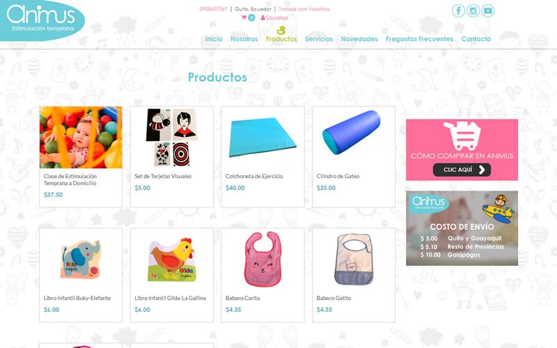 Descripción: Diseño, desarrollo de un Sitio Web con catálogo de Productos ANIMUS ESTIMULACIÓN TEMPRANA empresa especializada en trabajar brindando Estimulación Temprana personalizada a bebitos desde los dos meses hasta los tres años.