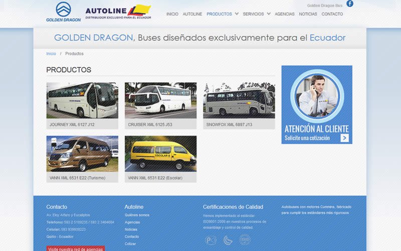 Descripción: Diseño y desarrollo del sitio web de buses y vehículo de transporte pesado GOLDEN DRAGON para la empresa AUTOLINE ECUADOR.