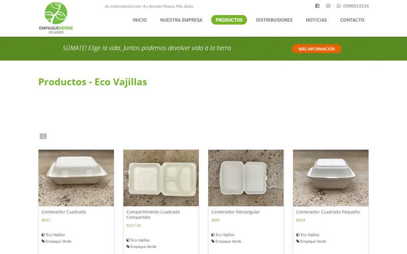 Descripción: Diseño, desarrollo de un Sitio Web con catálogo de Productos de Envases Biodegradables para la Empresa EMPAQUEVERDE ECUADOR. Empresa Ecuatoriana dedicada a la Distribución de envases, platos, cubiertos, sorbetes, utensillos en materioles biodegradables que ayudan y cuidan el planeta.