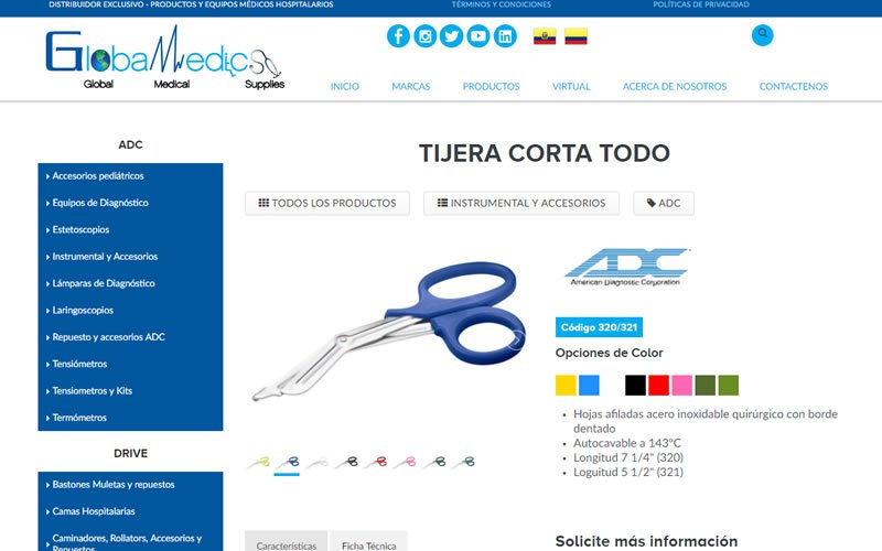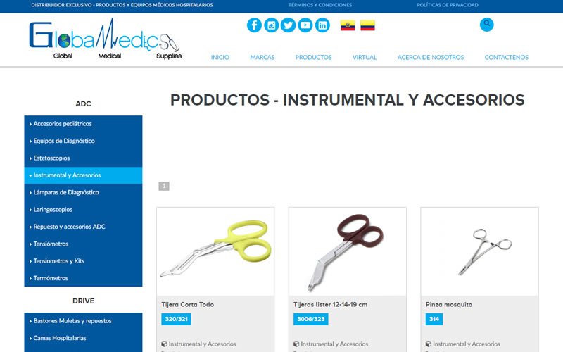 Descripción: Diseño y Desarrollo de un Sitio Web con catálogo de Productos para la empresa GLOBAMEDICS S.A. empresa con presencia en Ecuador y Colombia. GLOBAMEDICS S.A. es una empresa líder en el mercado ecuatoriano, encargados de importar y distribuir equipos médicos de calidad y alta tecnología y distribución exclusiva de reconocidas empresas extranjeras líderes en el mercado Estadunidense
