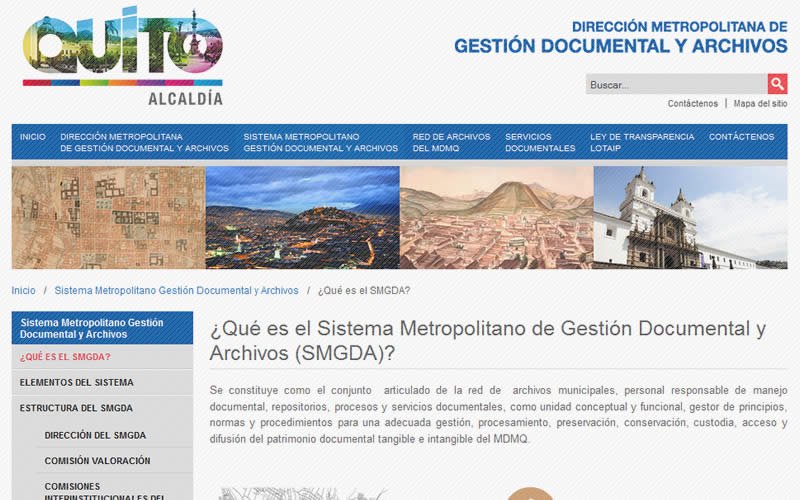 Descripción: Diseño y desarrollo del portal web institucional de la Dirección Metropolitana de Gestión Documental Archivo del Distrito Metropolitano de Quito.