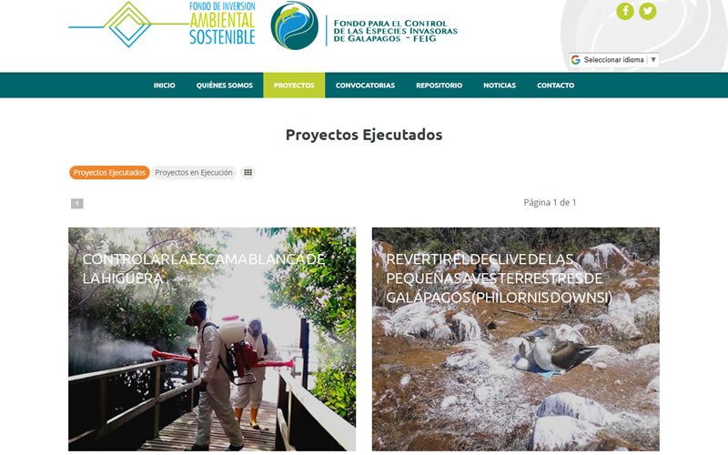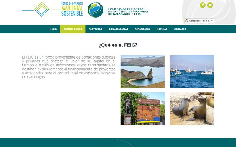 Descripción: Diseño y desarrollo de una Plataforma Web personalizada con Xperto CMS para el Fondo para el Control de las Especies Invasoras de Galápagos - FEIG, empresa que realiza actividades de control total de especies invasoras en Galápagos con donaciones públicas y privadas que sus aportes se destinan exclusivamente al financiamiento de proyectos.