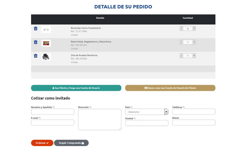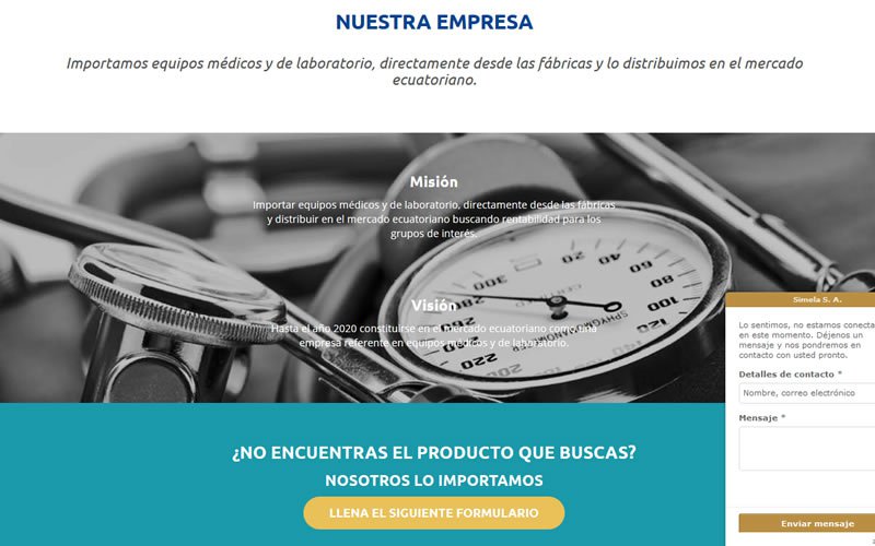 Descripción: Diseño, desarrollo de un Catálogo de Productos de Simela Importadora de Equipos Médicos. Carrito de Compras. Ecommerce.