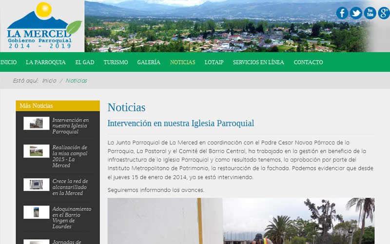 Descripción: Diseño y desarrollo del portal web institucional del GAD de la Parroquia La Merced de Quito.