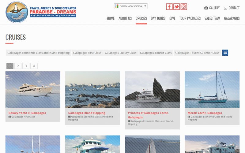 Descripción: Diseño y desarrollo de un Catálogo de de Cruceros y Paqueters Turísticos para Galapagos Paradise Dream Agencia de Turismo dedicada a ofertar y promocionar cruceros y tours LAST MINUTES a las Islas Galapagos, Ecuador.