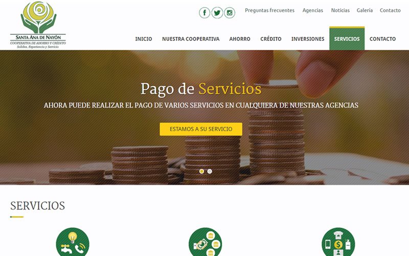 Descripción: Diseño y Desarrollo de un nuevo portal web para La Cooperativa de Ahorro y Crédito Santa Ana de Nayón COACSA.