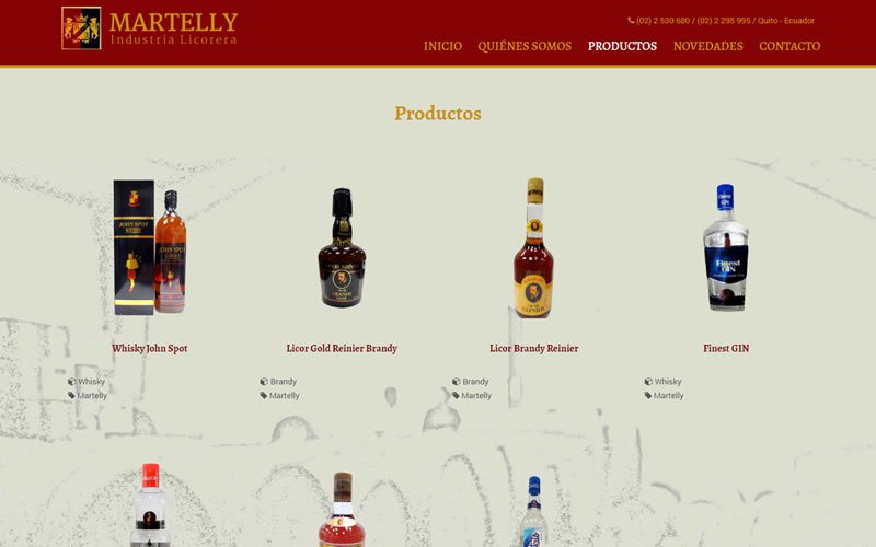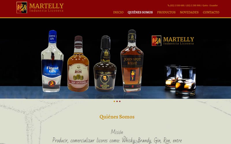Descripción: Desarrollo de sitio web de INDUSTRIA LICORERA MARTELLY empresa especializada en producir y comercializar licores como: Whisky, Brandy, Gin, Ron, entre otros, administrando adecuadamente los canales de distribución y mercado a nivel local, nacional e internacional.