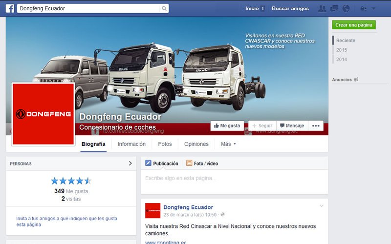 Descripción: Soporte de Community Manager, Red Social Facebook para DONGFENG Del Ecuador.