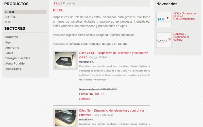 Descripción: Diseño y desarrollo de un catálogo web de productos especializados en Desarrollo de Productos Tecnológicos para Telemetría en la empresa WATCHING SOLUCIONES TECNOLÓGICAS