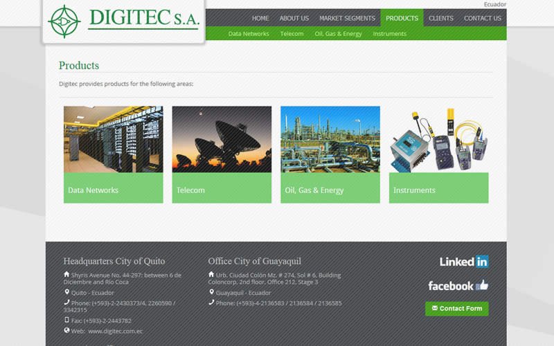 Descripción: Diseño y desarrollo de catálogo web de productos de DIGITEC S.A., empresa proveedora de productos y servicios de los sectores: Telecomunicaciones, Internetworking, Oil & Gas.