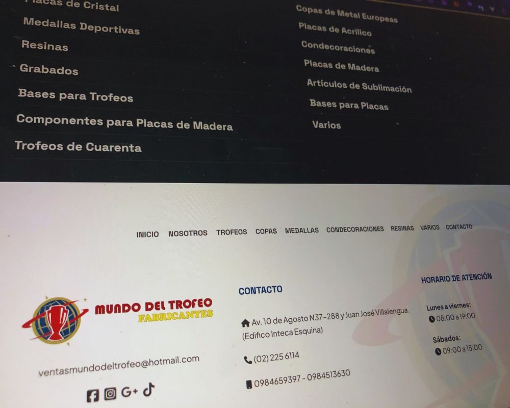 Descripción: Diseñamos y desarrollamos el nuevo Sitio Web para de la empresa Mundo del Trofeo, empresa ecuatoriana especializada en la fabricación personalizada de medallas, tropeos, copas, copas europeas, placas de reconocimiento, escarapelas, placas acrilicas, resinas, placas de cristal. Estos productos son distrobuidos y comercializados a nivel nacional.