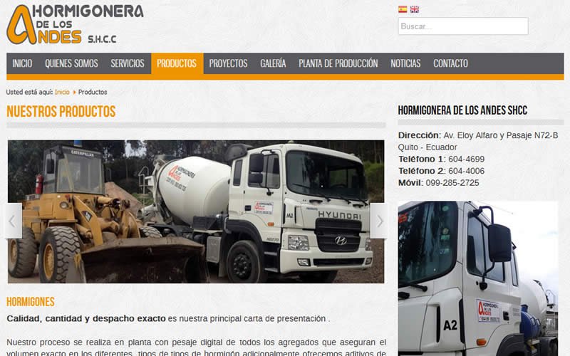 Descripción: Diseño y desarrollo de un portal Web Corporativo de Hirmigonera de los Andes SCHH, empresa dedicada a la producción y comercialización de concreto brindando una asesoría personalizada.