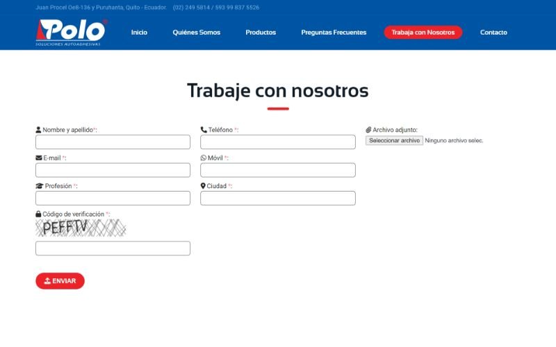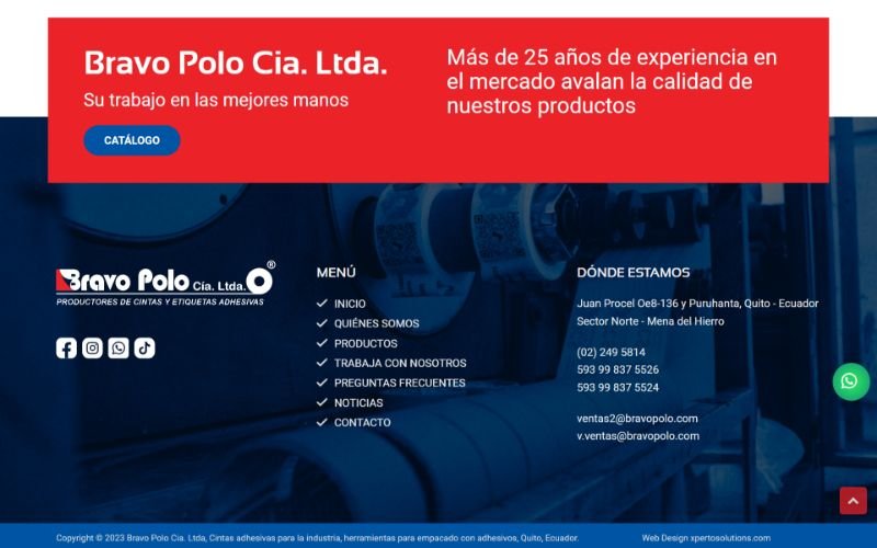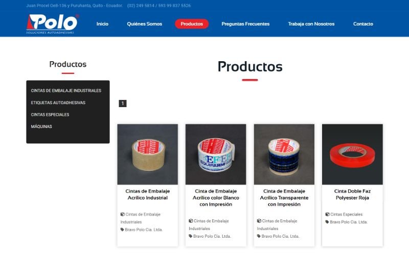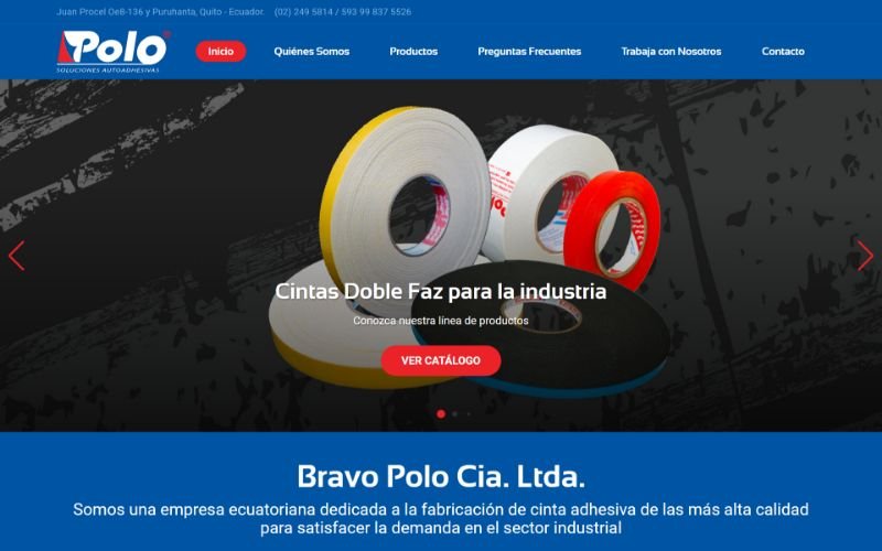Descripción: Diseño, desarrollo de un Sitio Web con catálogo de Productos para la empresa Ecuatoriana Bravo Polo Cia. Ltda. Empresa encargada en la elaboración, fabricación y venta de sus propias cintas enfocadas netamente en el Mercado Industrial Ecuatoriano.