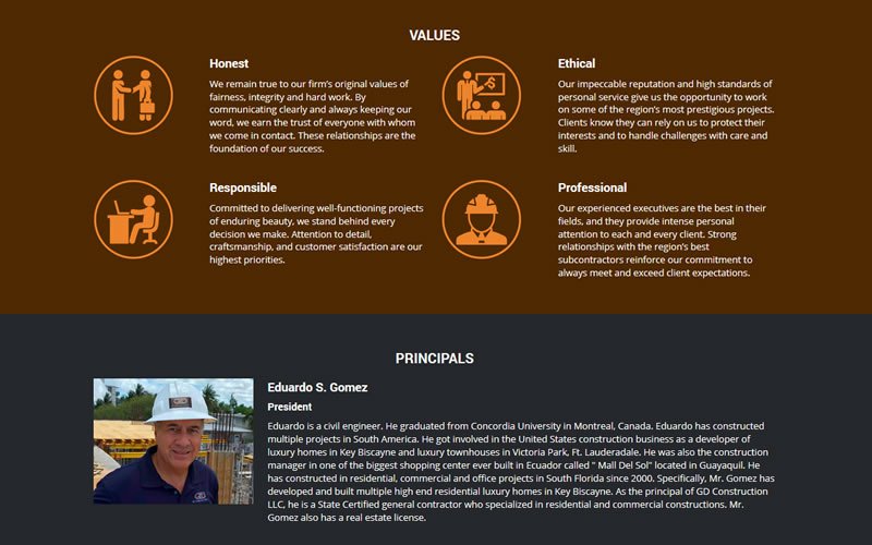 Descripción: Diseño, desarrollo de un Sitio Web Corporativo para la Empresa Construtora GDCONSTRUCTION LLC de Miami, USA.